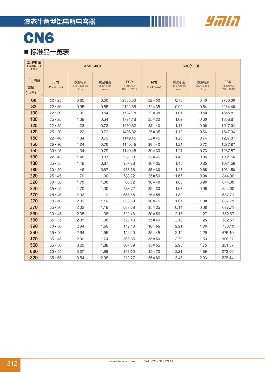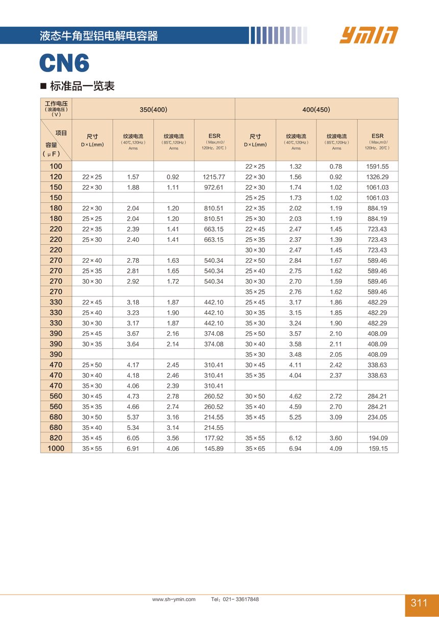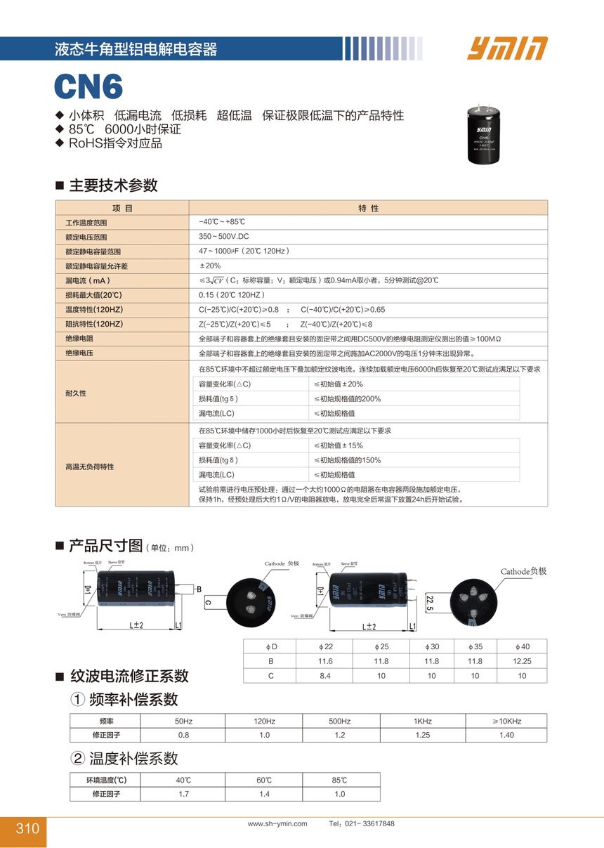 牛角型 CN6 85℃ 6000小时 超低温 小体积、长寿命