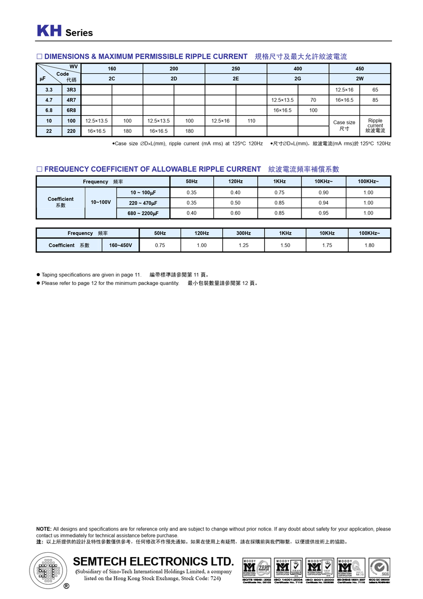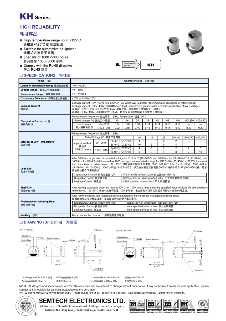 KH系列、 高可靠品、+125度、符合RoHS指令