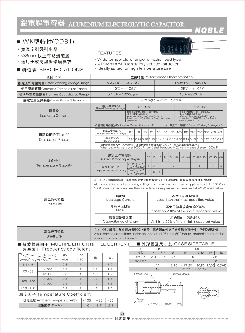 WK_棕色系列 高频低阻抗 6.3-450v 5000H长寿命品